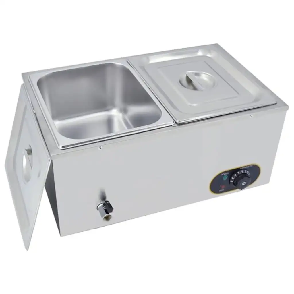 باين ماري كهربائي من الستانليس ستيل مع درجة حرارة قابلة للتعديل، 2 × 1/2 وعاء مع غطاء، 1500 واط