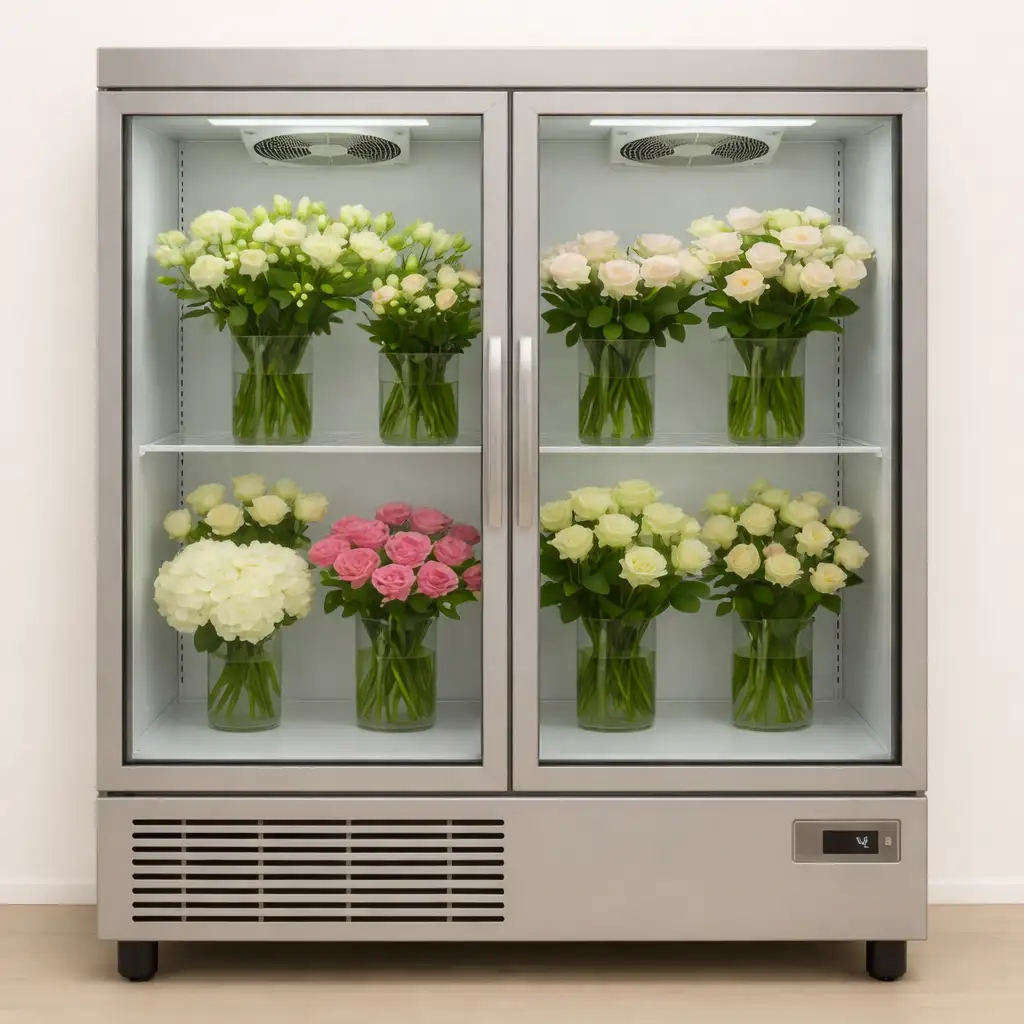 ثلاجة عرض أنيقة ومثالية لحفظ الزهور ونباتات الزينة في درجة حرارة مناسبة مع إبراز جمالها. بتصميم من الفولاذ المقاوم للصدأ وأبواب زجاجية مزدوجة، تقدم هذه الثلاجة عرضاً مثالياً وجذاباً داخل محلات الزهور.