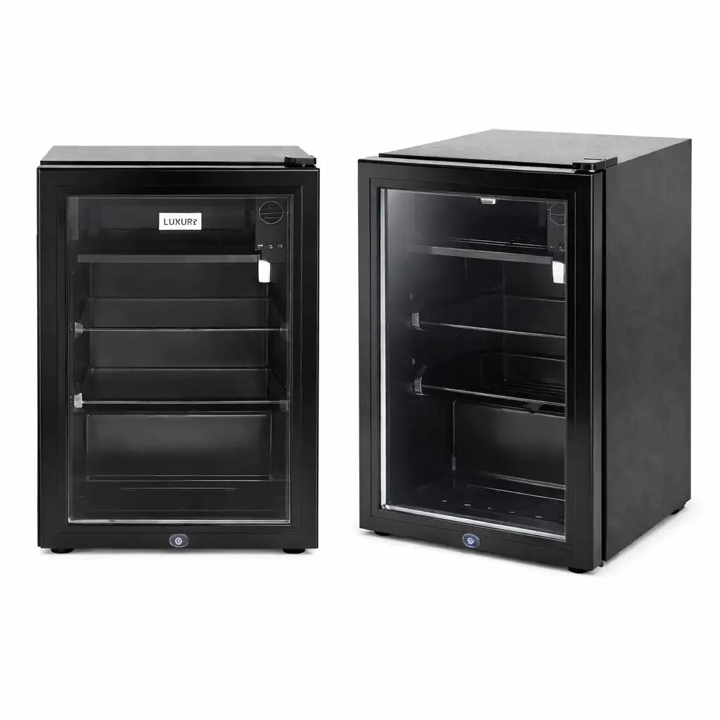 تحتوي الثلاجة على أرفف زجاجية قابلة للتعديل تناسب مختلف أحجام العبوات، مع تحكم يدوي بدرجة الحرارة للحفاظ على المشروبات في درجة التبريد المثالية. كما أن الفريزر الداخلي مناسب لحفظ الثلج أو كميات صغيرة من المنتجات المجمدة. الباب مزود بقفل لزيادة الأمان، وإضاءة داخلية LED لعرض أفضل للمنتجات.