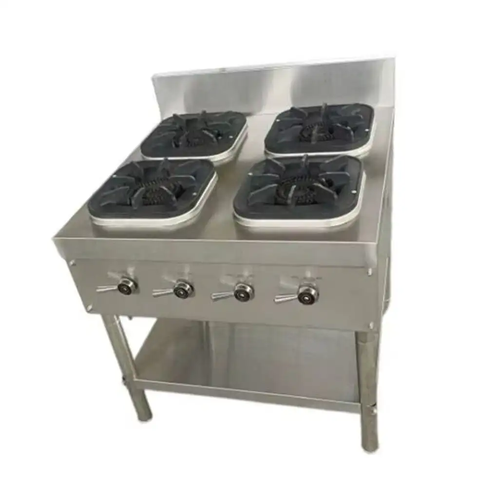 احصل على أداء قوي في حجم مدمج مع هذا الموقد الغازي التجاري بـ 4 شعلات، والمثالي للمطاعم الصغيرة والمتوسطة والمطابخ التجارية. يتميز بهيكل من الستانلس ستيل المقاوم للصدأ وشعلات من الحديد الزهر لتوزيع حراري ممتاز وسهولة في التنظيف.