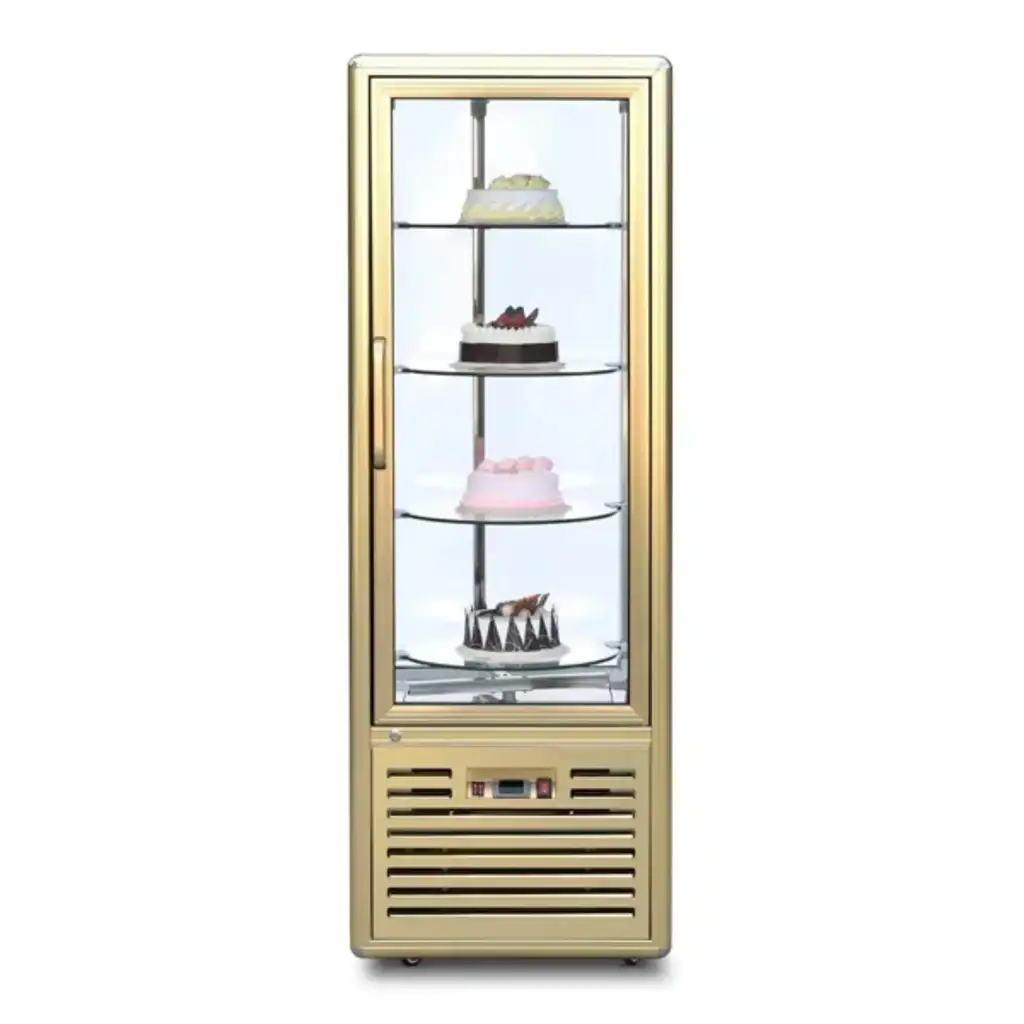 خزانة عرض كيك عمودية بباب واحد، مصممة للمساحات الصغيرة والمتوسطة، وتوفّر عرضًا جذابًا للحلويات والكيك بدرجة حرارة مثالية. تأتي مع 4 أرفف زجاجية قوية، وإضاءة LED علوية وجانبية تُبرز المنتجات بجاذبية، ووحدة تحكم إلكترونية تسهّل التحكم بدرجة الحرارة.