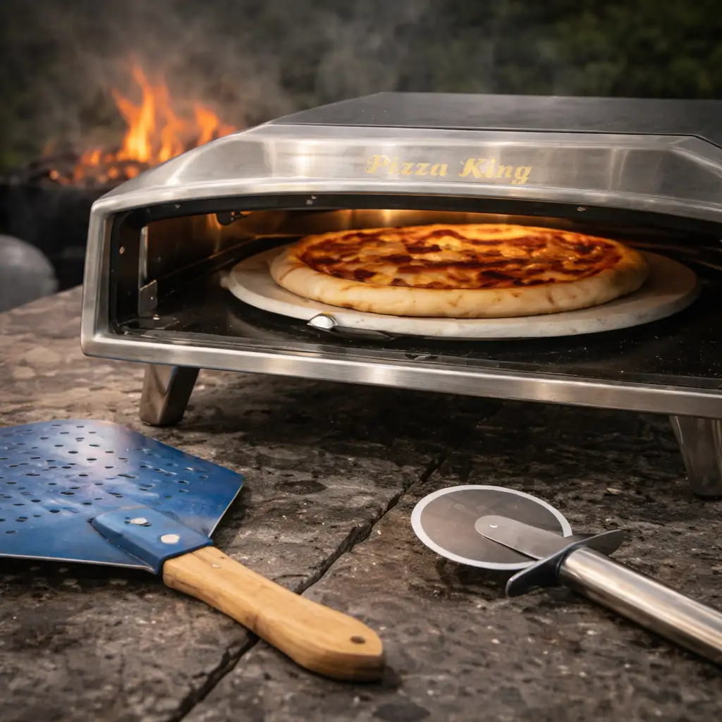 فرن بيتزا غاز Pizza King مقاس كبير بحجر بيتزا دوّار + مجرفة وقطّاعة