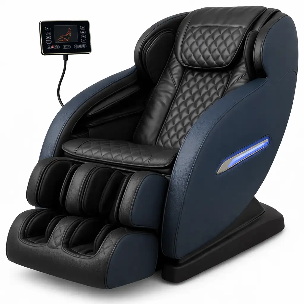 كرسي مساج فاخر لكامل الجسم – أزرق داكن وأسود