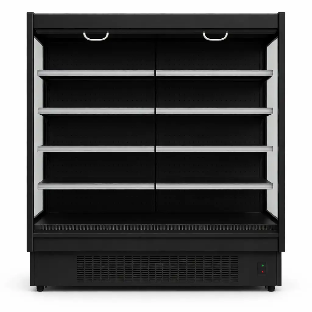 مبرد عرض مفتوح بطول 2 متر، مصمم لعرض المنتجات بشكل مثالي مع تبريد فعال. يحتوي على 5 رفوف قابلة للتعديل وستارتين علوية لحفظ البرودة أثناء الليل، بالإضافة إلى إضاءة LED. مثالي للسوبر ماركت والمتاجر الصغيرة بفضل تصميمه العصري والعملي.