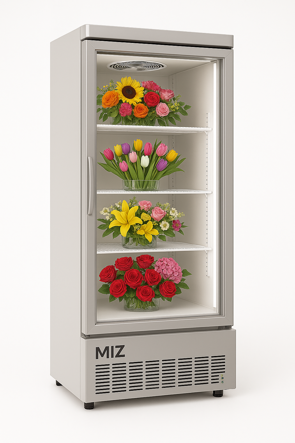 ثلاجة MIZ لعرض الورود هي الحل المثالي لعرض الزهور الطازجة وحفظها بأناقة في المحلات التجارية أو المناسبات. تتميز بتصميم عصري أنيق مع باب زجاجي شفاف يتيح رؤية كاملة وجذابة للزهور المعروضة. مزودة بنظام تبريد فعّال ورفوف سلكية قابلة للتعديل، ما يوفر توزيعًا مثاليًا للبرودة ويضمن الحفاظ على نضارة الزهور لأطول فترة ممكنة.