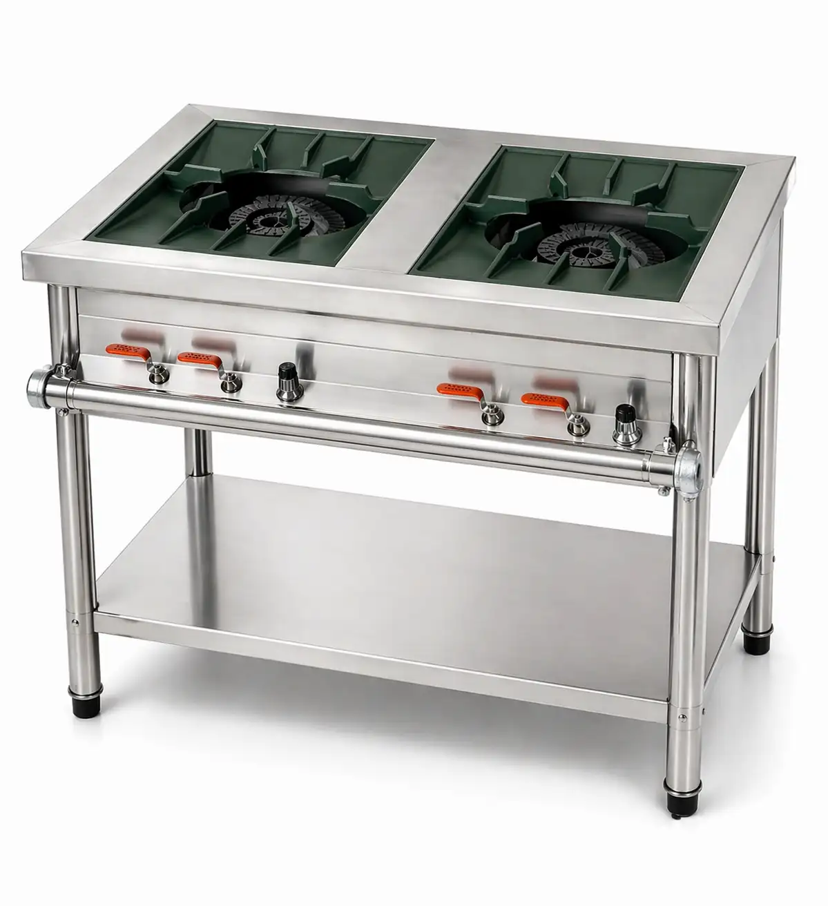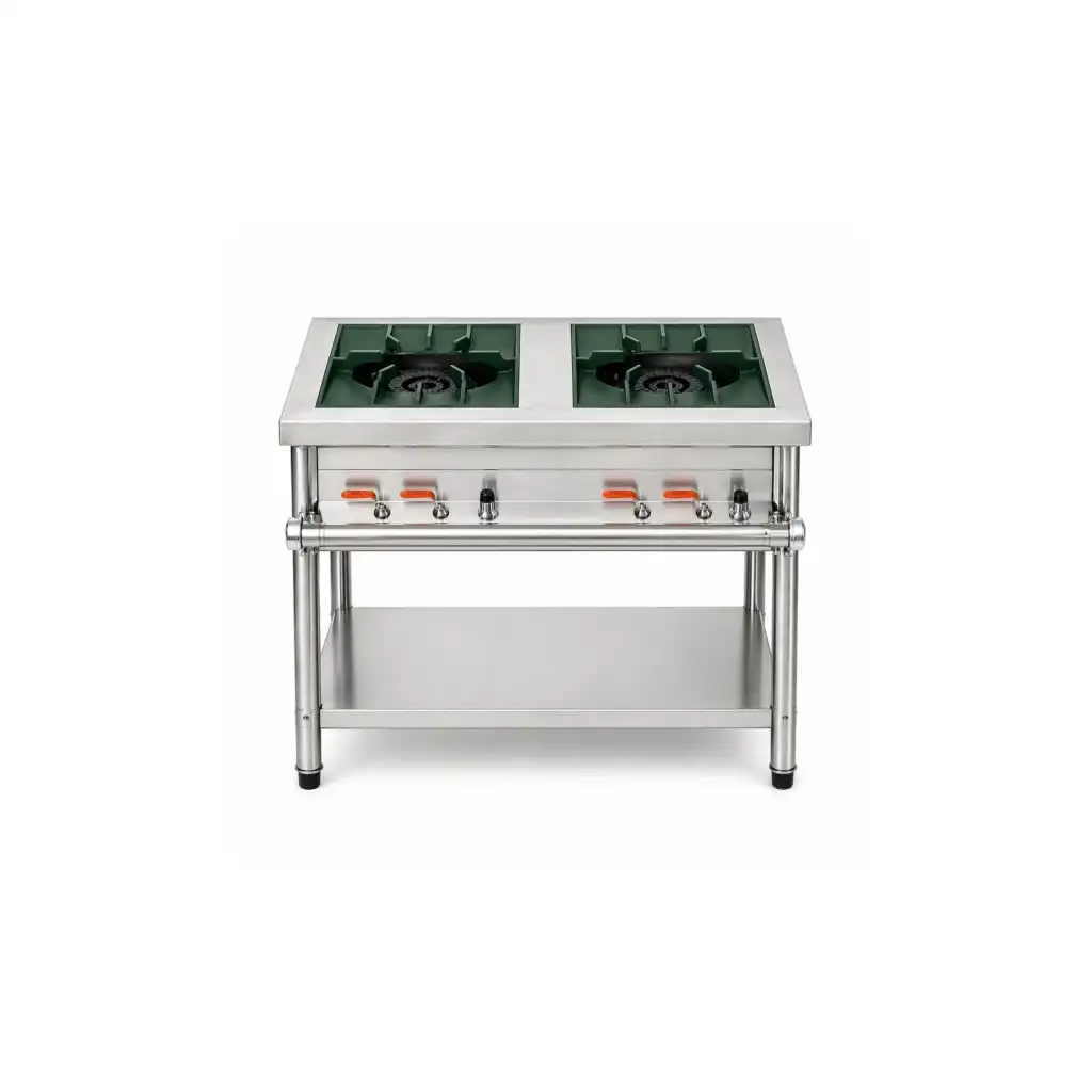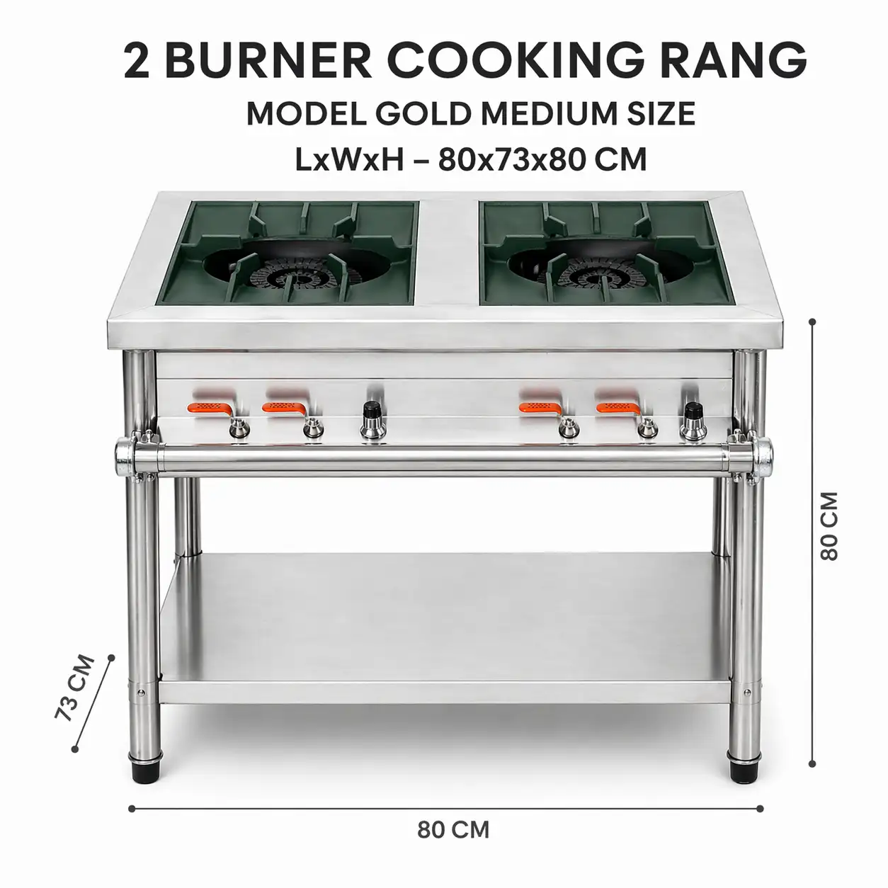 A durable and high-performance 2 burner commercial cooking range designed for restaurants, cafeterias, and professional kitchens. Built with premium stainless steel, this unit ensures long-lasting durability, easy cleaning, and resistance to corrosion. The powerful burners provide consistent heat for efficient cooking, while the sturdy structure and lower storage shelf offer practicality and convenience in busy kitchen environments.