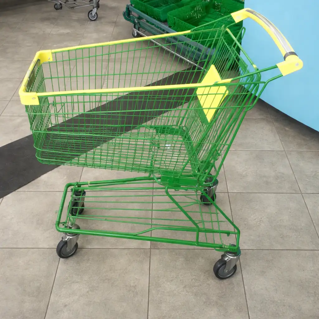 Bring a natural, eco-friendly vibe to your store with this plant-themed shopping cart, perfect for displaying flowers, herbs, or botanical items in a retail or promotional setting. With a 100-liter capacity and sturdy design, it functions as both a decorative piece and a light-use shopping or display cart.