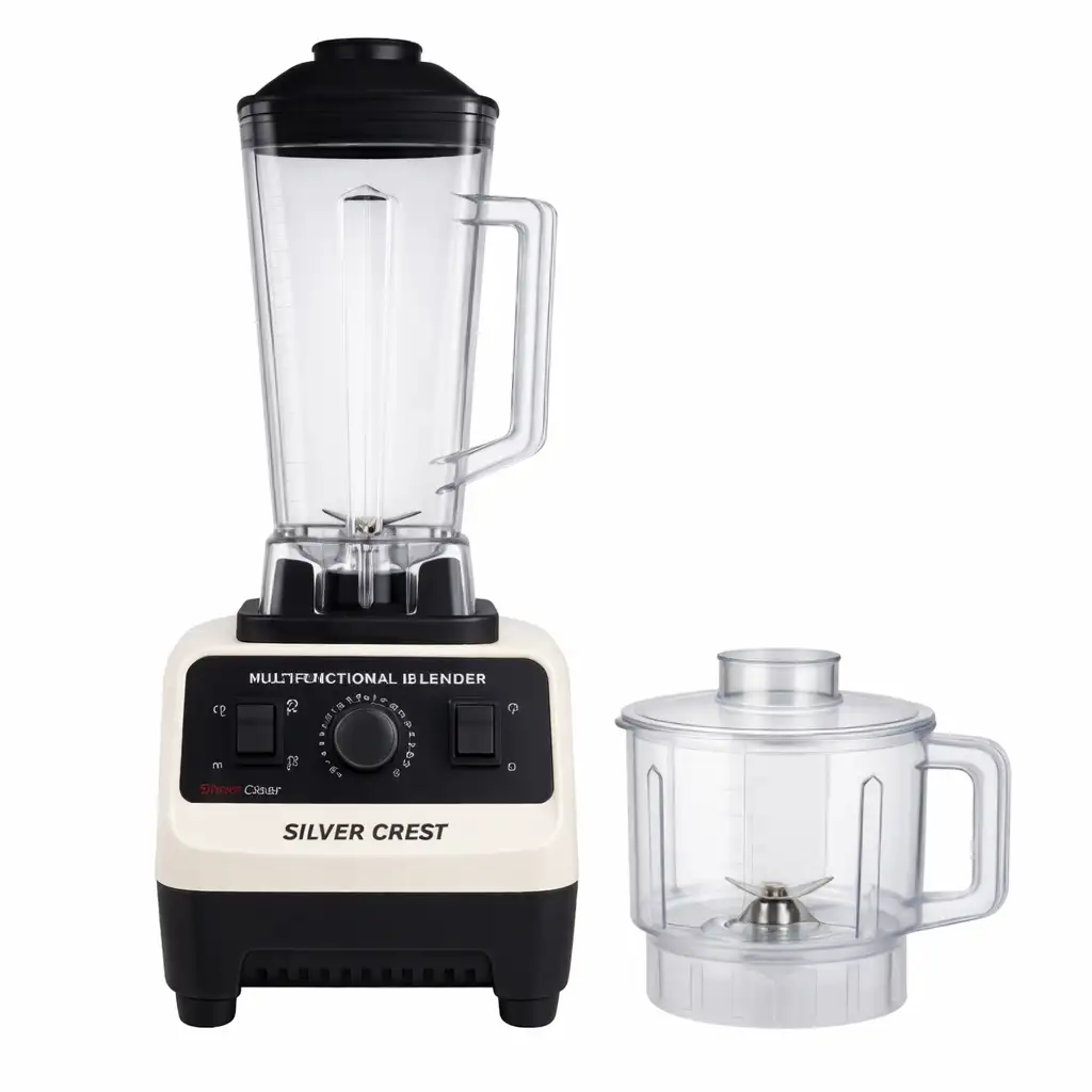 The Silver Crest multifunctional blender is designed for powerful and versatile kitchen performance. Featuring a durable motor base with user-friendly controls, this appliance comes with two BPA-free jars: a large 2-liter blending jar for smoothies, juices, and soups, and a compact processor jar ideal for grinding, chopping, or making pastes.