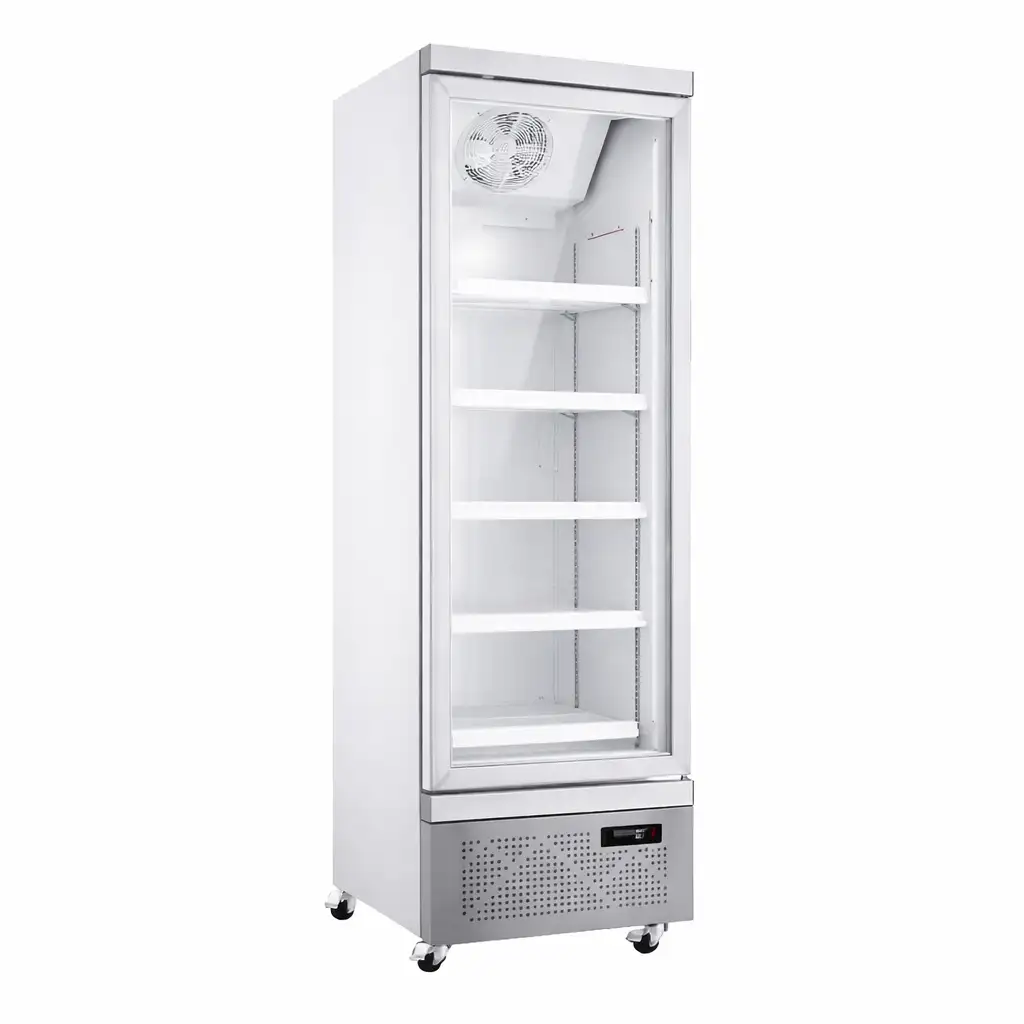Upright single glass door freezer white color