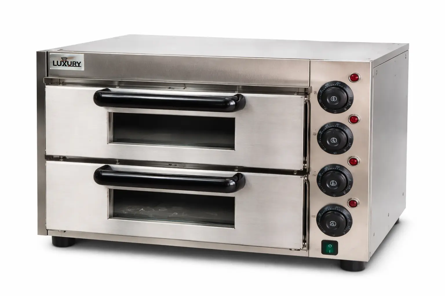 The Double Deck Electric Pizza Oven – Model GD-ST2 is a high-performance commercial baking solution designed for restaurants, pizzerias, cafés, and food outlets with high production demand. Built with a durable stainless-steel body, this oven ensures long-lasting performance, professional appearance, and easy maintenance.