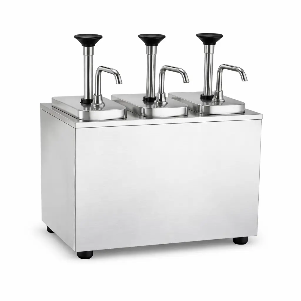 The Sauce Pump 3 Head is a high-capacity countertop dispenser designed for fast, hygienic, and efficient sauce dispensing in busy food service environments. Featuring three manual pump heads, it allows simultaneous dispensing of different sauces with accurate portion control. Built with a durable stainless steel body, this unit is ideal for restaurants, fast-food outlets, cafeterias, and buffet stations requiring high-volume sauce service.