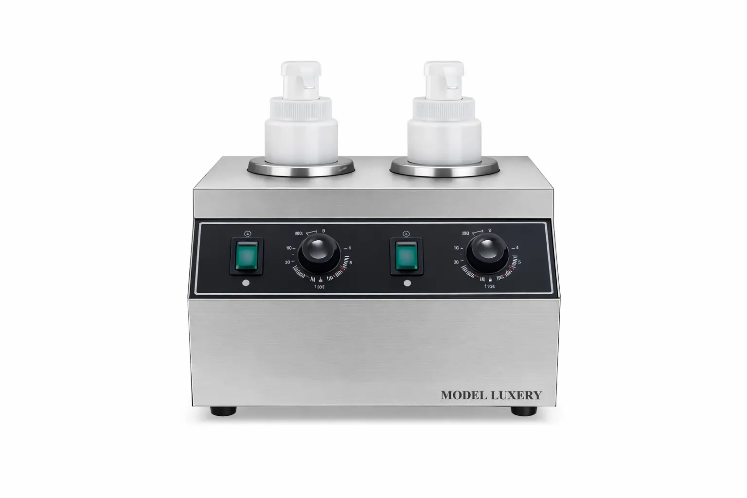 - Dual-head design for warming two sauces simultaneously